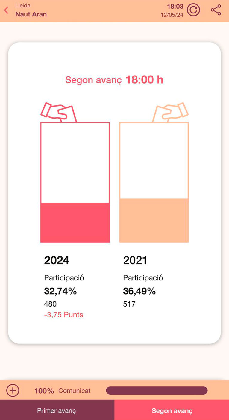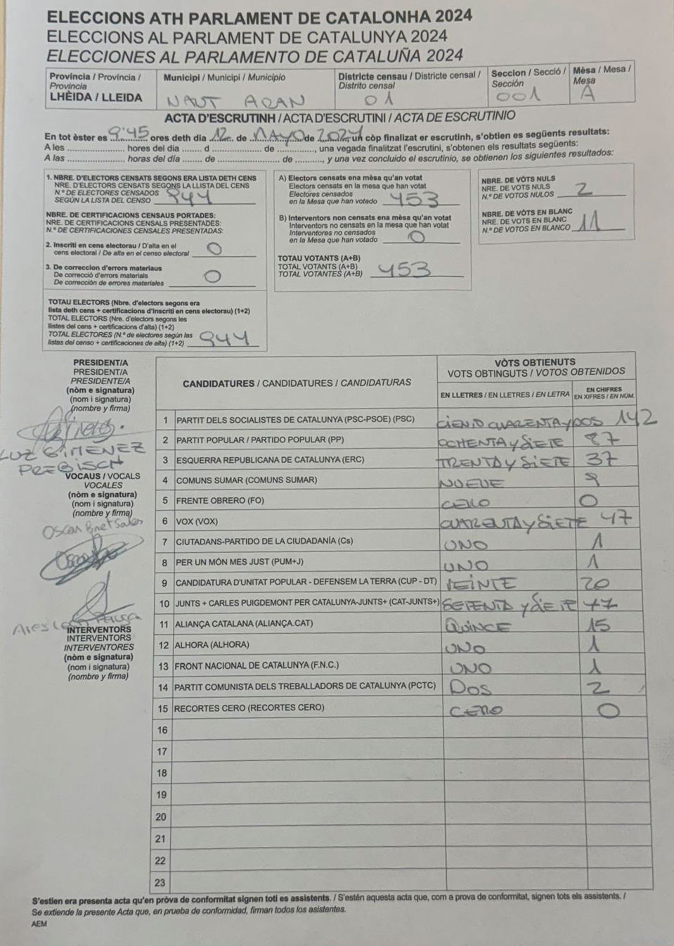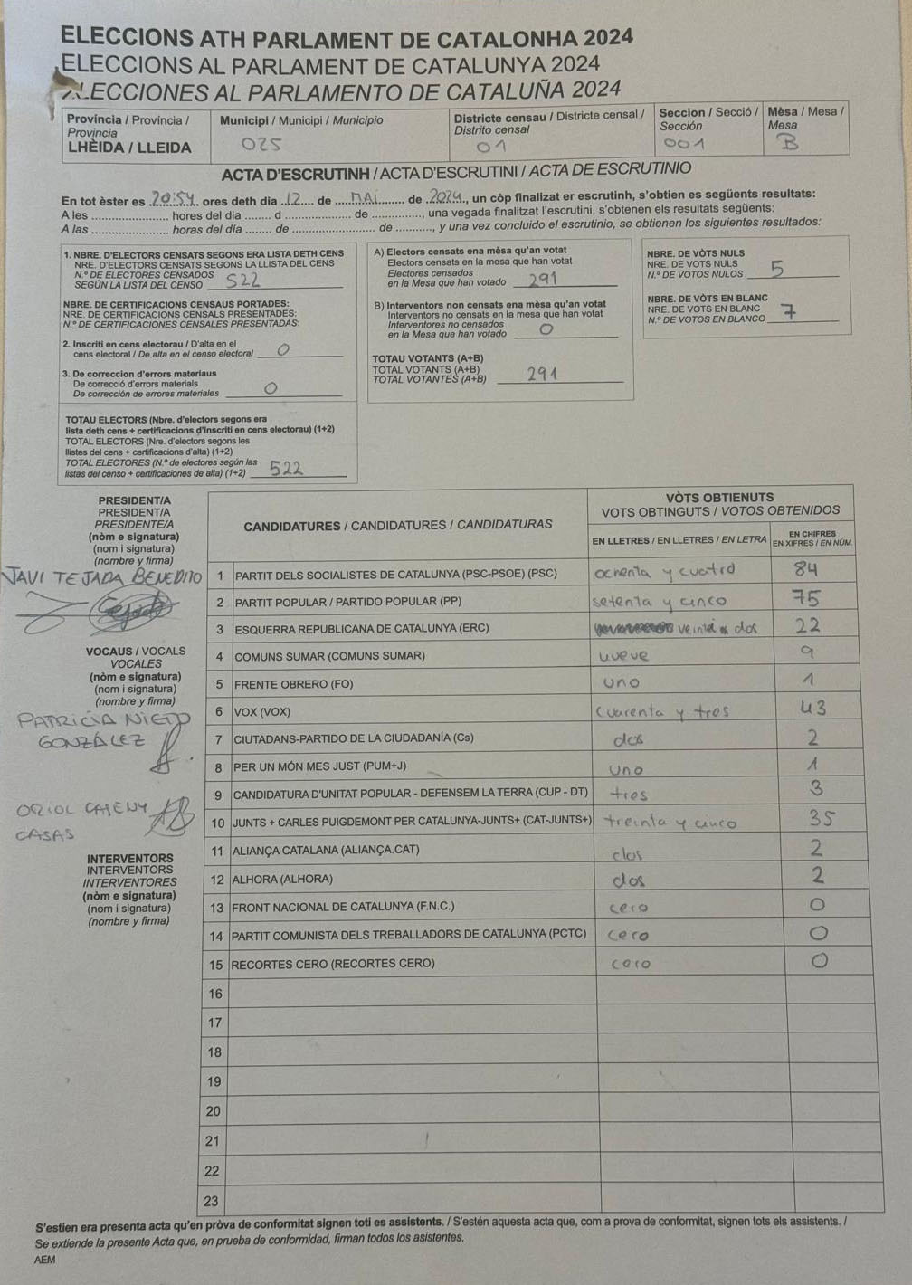Eleccions Parlament de Catalunya 12 maig de 2024 Documents Oficials Eleccions h Edicte DOGC Núm. 9125 - 19-03-2024 h Normes complementaries eleccions h Calendari Electoral h Band Eleccions Parlament 12 de maig de 2024 Constitucion de Meses Mesa A Salardú 944 Censats Mesa B Arties e Garòs 522 Censats Resultats Meses h Resultats Mesa A Salardú h Resultat Mesa B Arties e Garòs Resultats Provisionals Eleccions 12 maig 2024