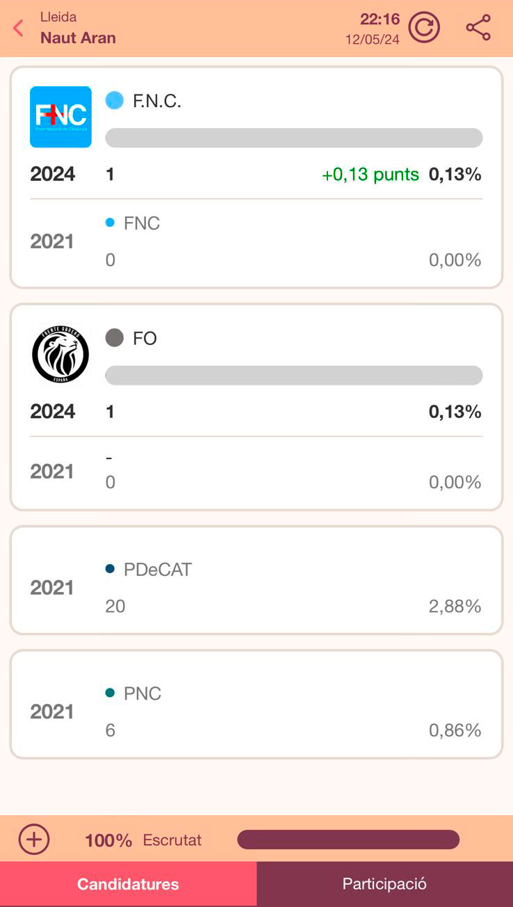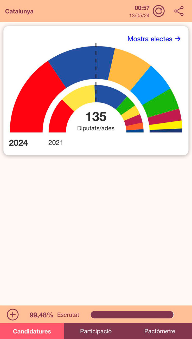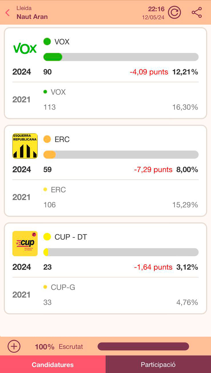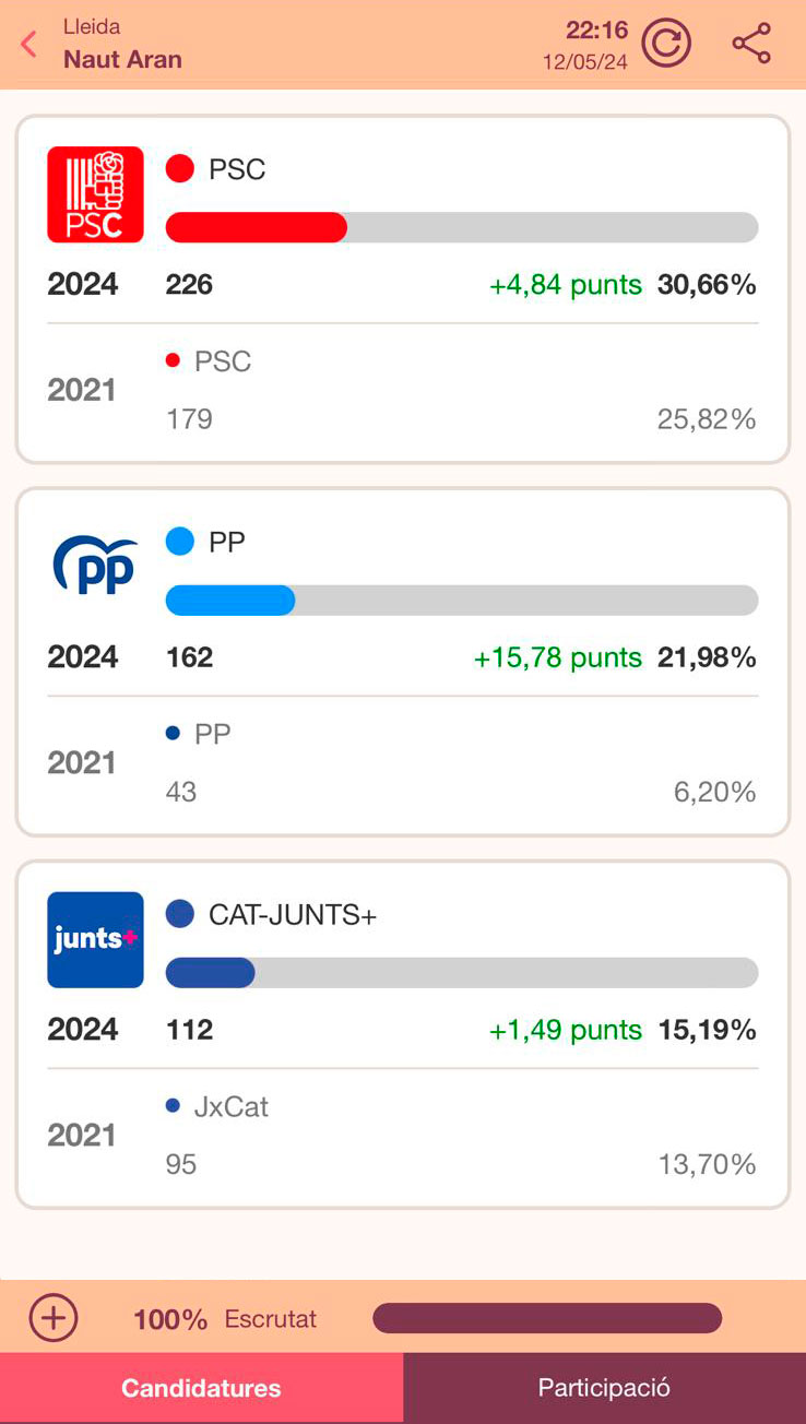 Eleccions Parlament de Catalunya 12 maig de 2024 Documents Oficials Eleccions h Edicte DOGC Núm. 9125 - 19-03-2024 h Normes complementaries eleccions h Calendari Electoral h Band Eleccions Parlament 12 de maig de 2024 Constitucion de Meses Mesa A Salardú 944 Censats Mesa B Arties e Garòs 522 Censats Resultats Meses h Resultats Mesa A Salardú h Resultat Mesa B Arties e Garòs Resultats Provisionals Eleccions 12 maig 2024