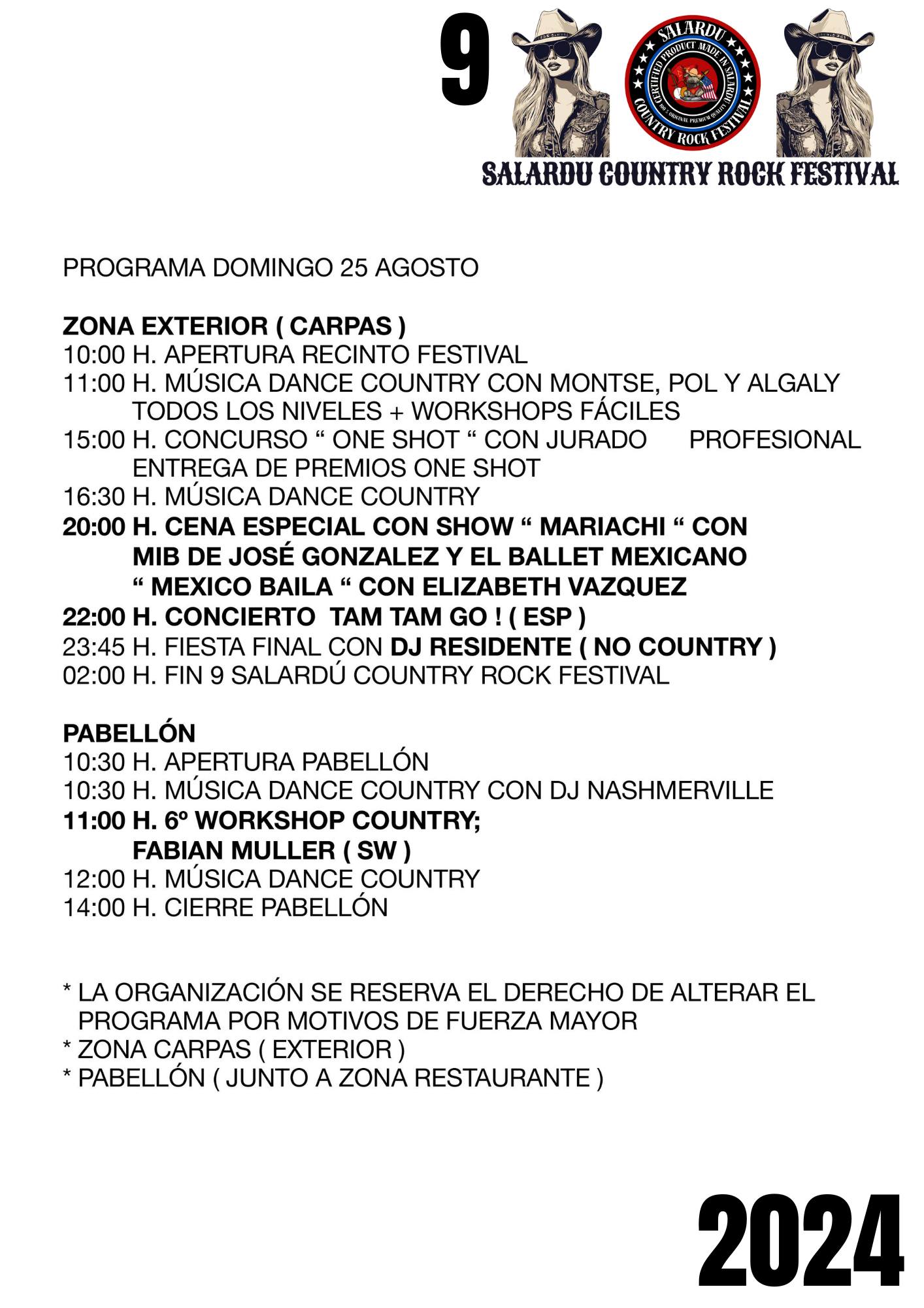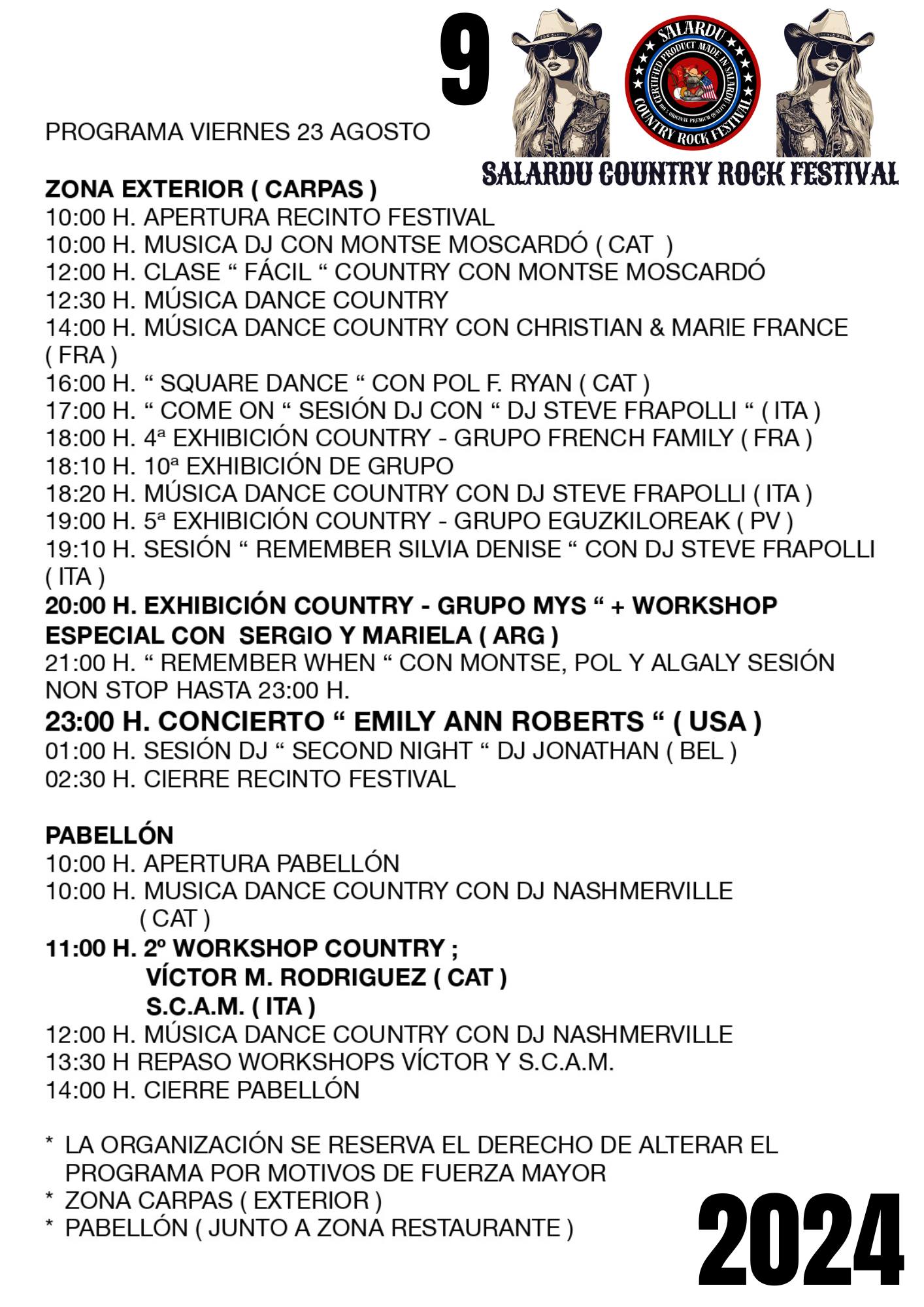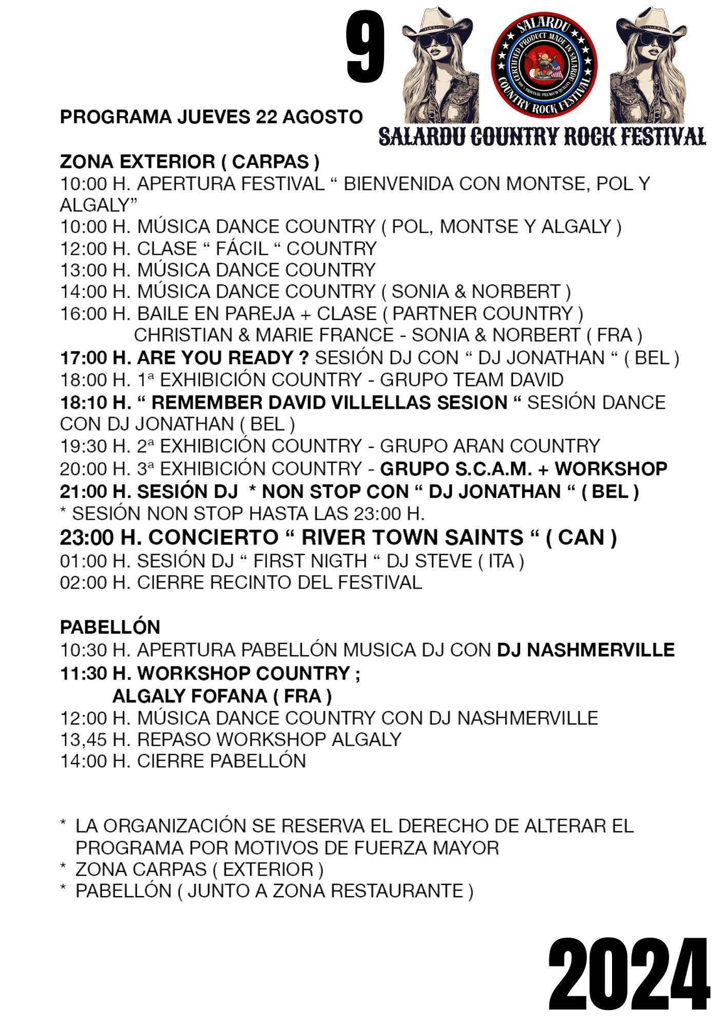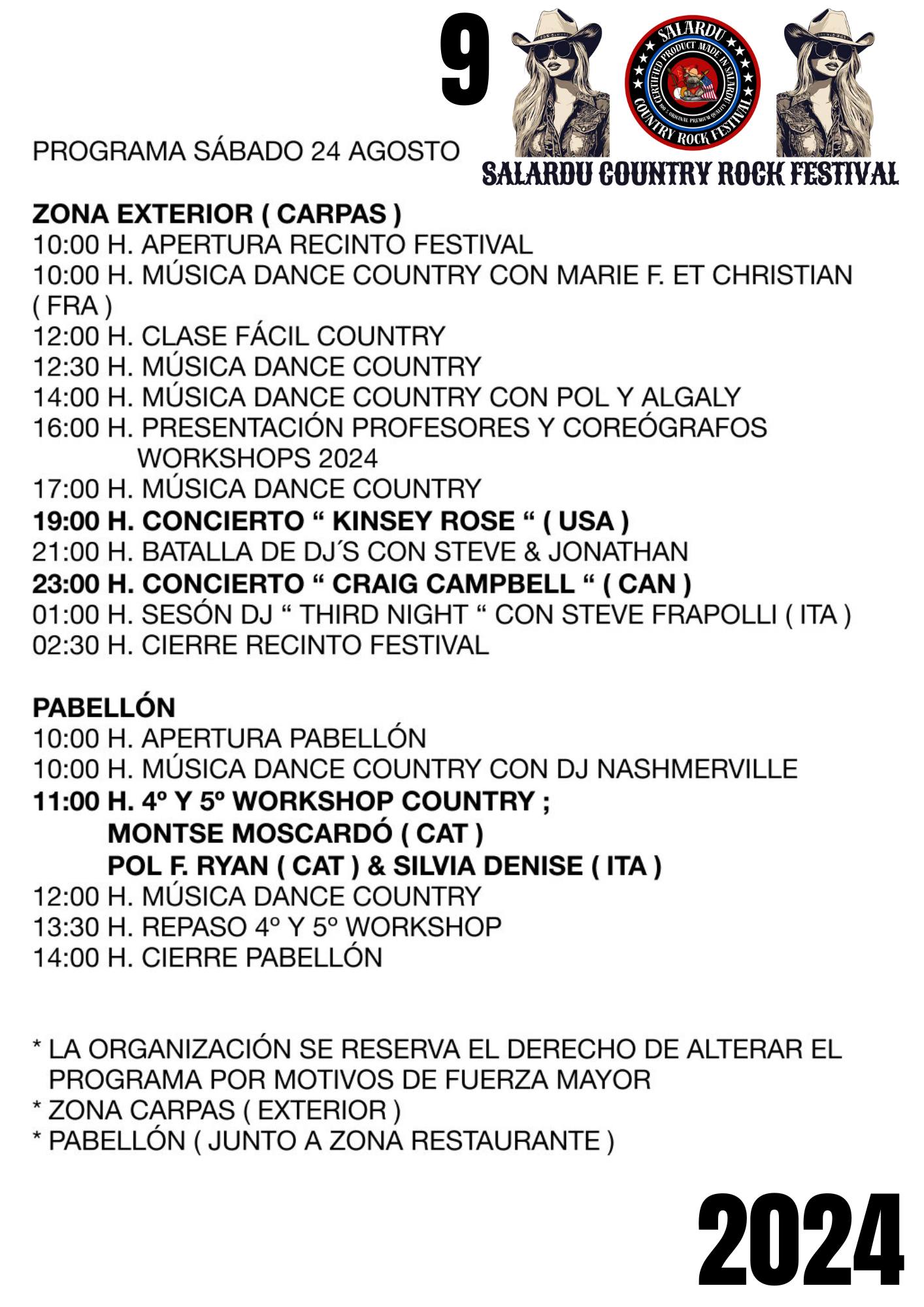 Programa deth Salardú Country Rock Festival 21/08/2024 Ara seguida se detalhe eth programa d’aguesta 9au edicion deth Salardú Country Rock Festival: