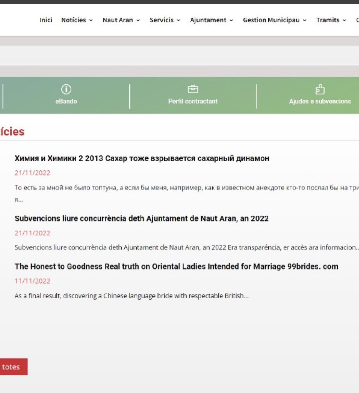 El Ayuntamiento de Naut Aran quiere comunicar que ayer a mediodía sufrió un ataque cibernético con el que, un bot (un programa inteligente informático), accedió al apartado de entradas de la sección de noticias en versión aranesa e introdujo una serie de textos en idioma ruso e inglés.